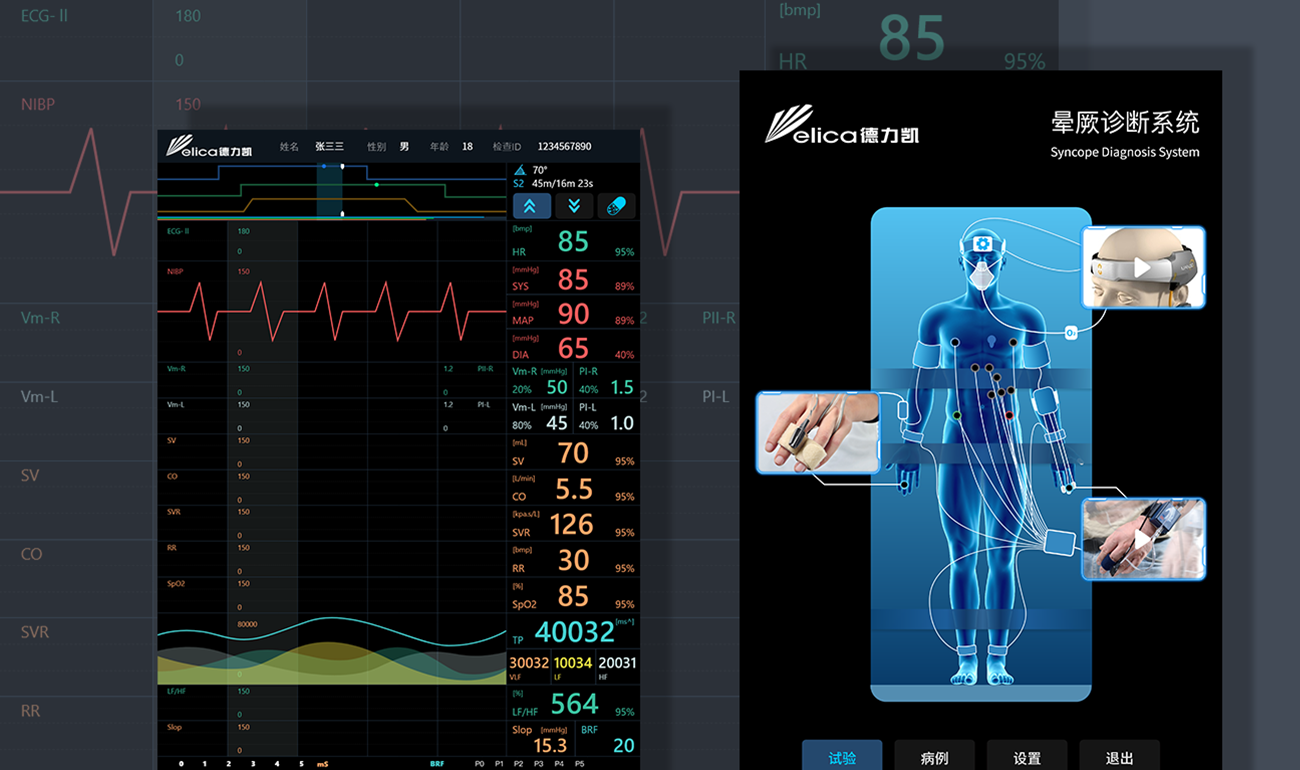 德力凱TCD與暈厥系統(tǒng)都是需要長時間使用的設(shè)備系統(tǒng),且需要使用者高度集中注意力,未避免用戶產(chǎn)生視覺疲勞,影響觀看效果,整體以Dark Mode為主要方向,將界面的飽和度、亮度調(diào)整至合適的位置。在色彩選擇時也謹(jǐn)慎地避開醫(yī)療行業(yè)特殊顏色,以免用戶使用時產(chǎn)生偏差理解。UI以沉穩(wěn)、安全、有保障為基礎(chǔ)理念設(shè)計,給人營造可靠、安全、有信心的氛圍。