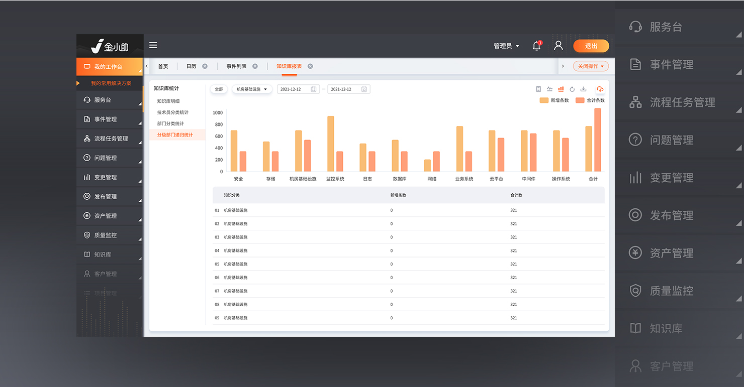 根據客戶的需求,結合品牌特色,以品牌中的橙色為中心延展色值,形成具有品牌特色和未來空間感的顏色搭配。考慮到界面中表單居多,在進行表單設計時采用單行線設計 ,用間隔區分列的關系,在整體界面顯示中表單在保證其區分性的同時也更加簡潔明了。柱狀圖的顏色搭配也較為柔和,在多色狀態中也不會讓使用者視覺疲勞。