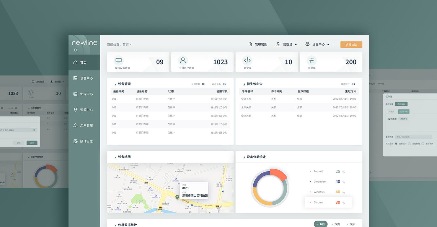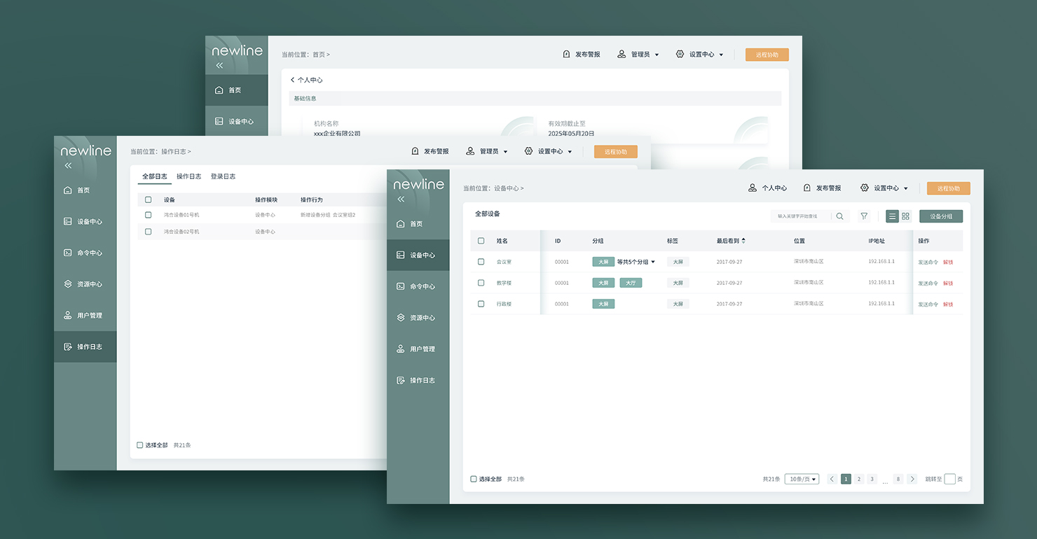 精簡化設計,讓使用者不被多余元素干擾操作。在界面中加入留白設計從而加大界面空間感和立體感。使畫面更加舒適通透。作為后臺管理端,使用者需要通過該平臺發布較為高級的命令到下級會議機。在設計界面時,以卡片式的設計區分版塊區域,讓用戶更好的區分各大功能區域。